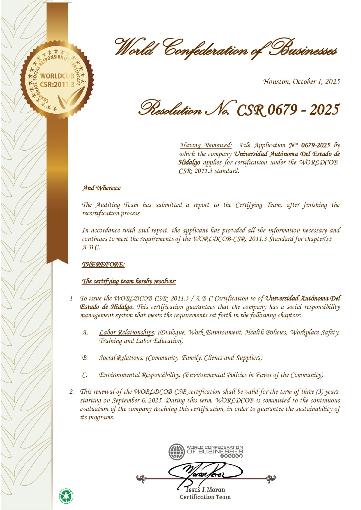 To guarantee continuous improvement at the Autonomous University of the State of Hidalgo through the Integrated Institutional Management System, by coordinating the standardization and optimization of the organizational structures and the operability of the academic units and dependencies, promoting a culture of quality, environmental and social responsibility.