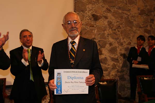Hace seis años, en la edición 29 de la Feria Universitaria del Libro, FUL 2016, que realiza la Universidad Autónoma del Estado de Hidalgo, el doctor Pérez Tamayo fue distinguido con el Premio Juan Crisóstomo Doria a las Humanidades.