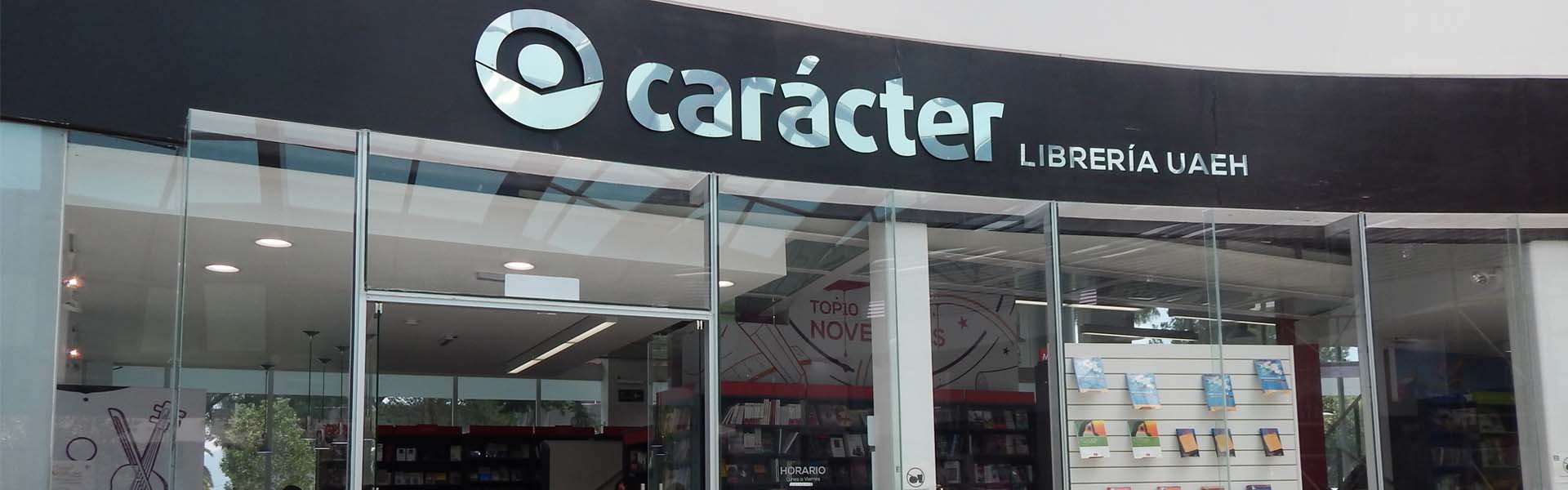 La librería Carácter de la UAEH es una de las más surtidas de la entidad, pues en sus inicios contaba con más de cinco mil títulos. Fue inaugurada en 2014, año en el que suscribió un convenio de colaboración con Gerardo Jaramillo Herrera, director general de EDUCAL, para formar parte de una red nacional.