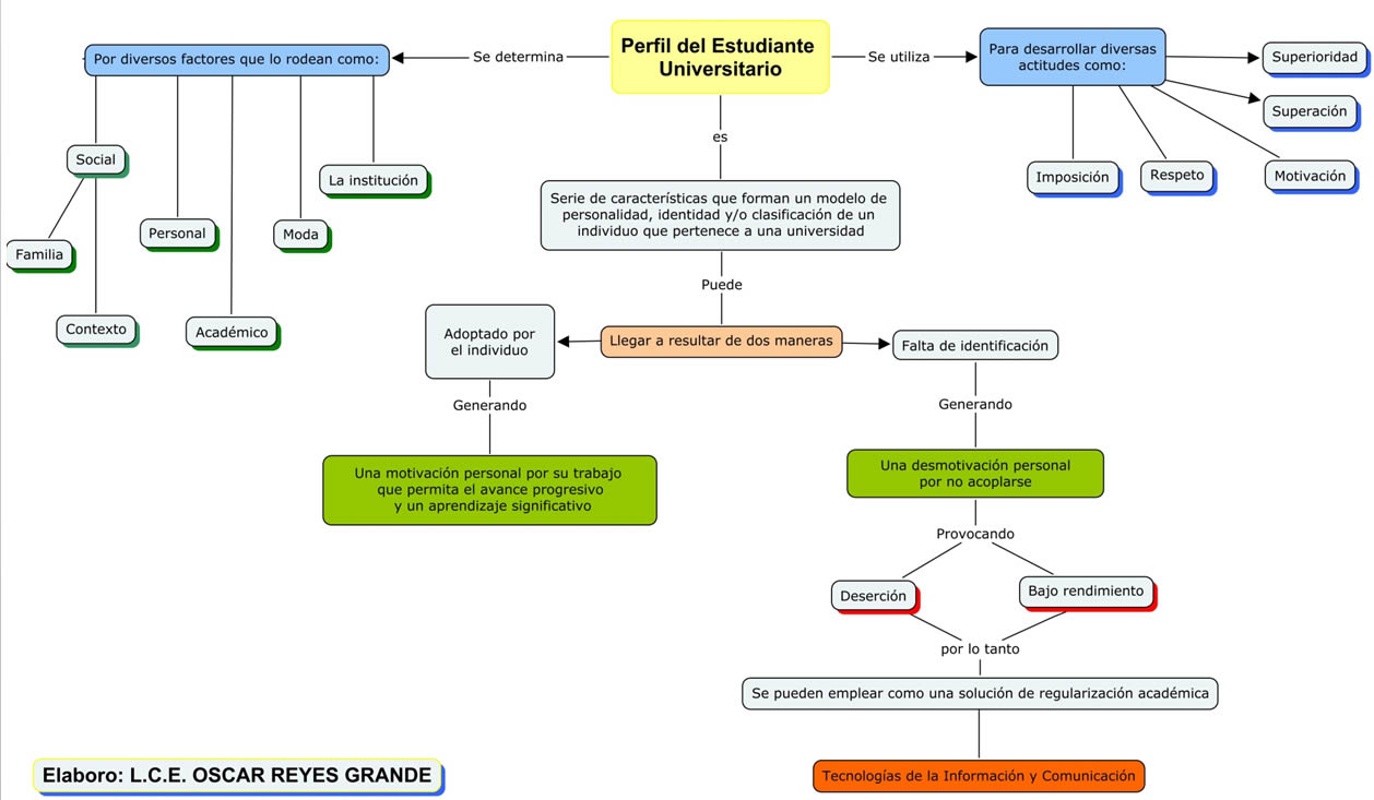 Nowadays the University Education has allowed the construction of a new sector of the Mexican society that at the same time becomes into a delimited social group, because of its characteristics and factors that determine it. The group of students acquire some characteristics that consciously or unconsciously are imposed to them in order to be considered by themselves as university students, unfortunately these characteristics are not adaptable to their personality, costumes or ideology, what takes to get results of no acceptance or personal unconformity that at the same time generates other kind of results that damage as the student such as the institution. The leaving early and the low development on the students sometimes can be due to lack of identity with their role as university students on the chosen major, therefore it is important to develop a strategy that allows reducing or eliminating those possible results. For this, the technology is again a tool for the activities execution that encourages the student to restart his/her role as university student, from the academic, social and personal point of view.