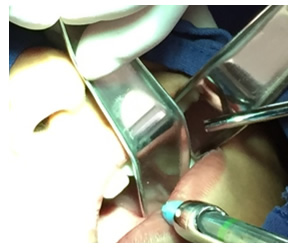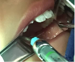 Figura 1. Anestesia Local a cada lado del frenillo.