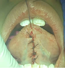 Figura 3. Sutura sin anudar en punta de la lengua