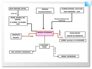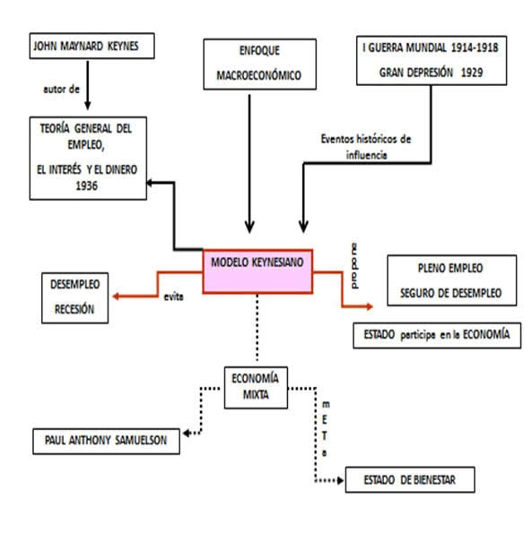 This work contains features that Keynesian model, which is one of the major economic trends of the last century, whose origin is mainly due to historical and political changes experienced by the world after World War I and the Great Depression in U.S. It is vital to note that this model is the precursor of the Mixed Economy and the first to address the macroeconomic approach.