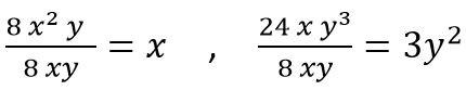 Ahora considera ambos casos tanto los números como la parte literal y calculemos el máximo común divisor: de 8 x2y , 24xy3 es: 8xy.