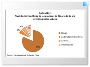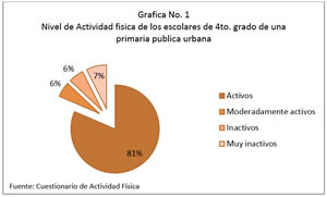 El nivel de actividad de los niños en edad escolar de 4to. grado de una escuela primaria publica urbana es activo. En promedio superan los 60 minutos de  actividad moderada y/o vigorosa recomendados por la OMS.